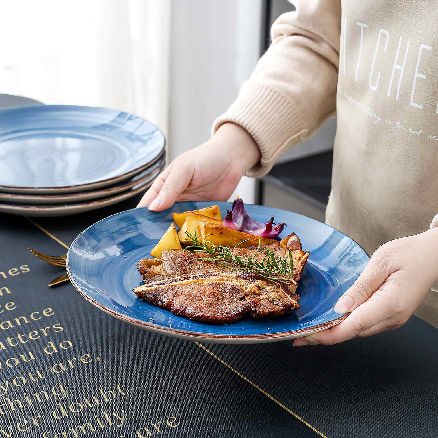 Each 10.5'' plate is meticulously handcrafted using a spiral stoneware technique and features a glossy finish that enhances its vintage allure. Available in beige, cream, blue, green, grey, and turquoise, these Bella Series plates add refined elegance to your table. Perfect for main courses, salads, or starters, their unique design and vibrant hues make them stand out at any dining occasion.