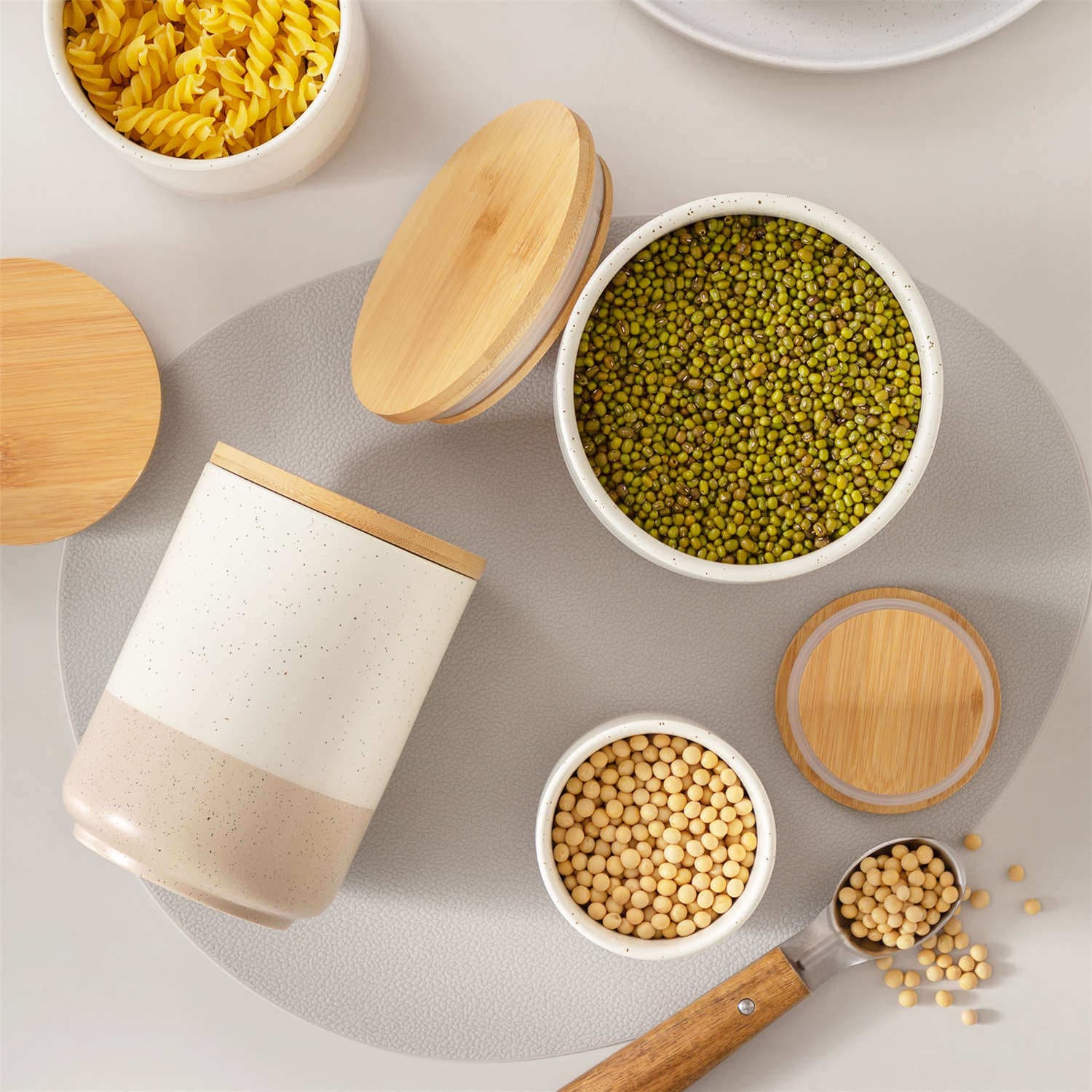 Sesame glaze, speckled stoneware canister set, from Sabine collection